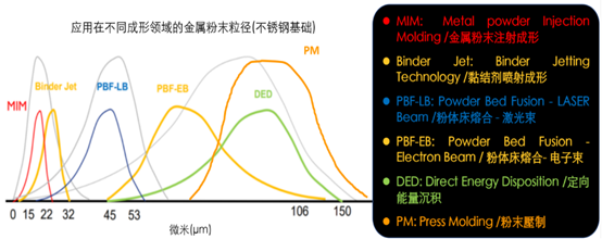 金屬粉末成形技術在發(fā)展數(shù)千年的歷史之后(最早在古埃及發(fā)現(xiàn)氧化鐵燒制的金屬制品,紀元前3000年),但是要談到大量制造還是在19世紀初的50年代開始,然而愛迪生發(fā)明電燈促使了粉末冶金(Powder Metallurgy, PM)的工業(yè)進步 – 鎢燈絲的制作已經(jīng)是20世紀之初(1909年),隨后鐵與銅金屬的粉末壓制與燒結(Press and sinter)便隨工業(yè)革命的帶動迅速取代傳統(tǒng)金屬加工的方法,尤其是在鑄造和鍛造的齒輪件;在近代約50年前(1960-1970年),金屬粉末成形技術迎來了兩個重要的年輕成員,金屬粉末注射成形(Metal – powder Injection Molding)與金屬增材制造(Metal Additive Manufacturing),更是成為人類有史以來最頂尖的大量金屬零件制造工藝。請隨Dr. Q的隨后說明來了解這三個當代主流金屬粉末成形技術。最重要結論l金屬粉末成形技術的核心是粉末科學,這是重中之重;l粉末壓制與燒結法(PM),成形過程的潤滑劑(成形助劑)不超過3wt%,燒結后零件密度在85-95%相對密度、表面沒有致密層、幾何形狀為2-2.5D的大批量制品,適合單筆訂單大于10萬件的月產(chǎn)能;l傳統(tǒng)壓制成形的粉末硬度低必須具有塑性變形能力,較硬質粉末與硬質合金的粉末冶金需要的成形助劑含量較高,因此也需要長時間的脫脂;l金屬粉末注射成形(MIM),因為粉末細小導致黏結劑(成形助劑>6wt%)較多,燒結后零件密度大于98%相對度、表面形成致密層、幾何形狀為3D的批量制品,適合單筆訂單大于1萬件的月產(chǎn)能;l金屬增材制造(MAM),燒結后零件密度大于98%相對密度、表面沒有致密層、幾何形狀為3D的少量制品,適合1~1000件以內的月產(chǎn)能。成形助劑根據(jù)MAM工藝不同而有區(qū)別。1.對于PM/MIM/MAM所使用的粉末可不可以共享?為什么?答:如圖1所表示,三大主流金屬粉末成形技術使用的粉末粒徑分布,其中PM最粗大、MIM最細小,增材制造則居中(包含圖中的Binder Jet, PBF-LB, PBF-EB, and DED)。