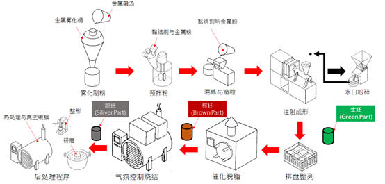 圖3.金屬粉末注射成形(MIM)的工藝流程圖