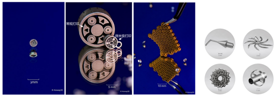 MIM制品的樣品展示(Dr. Q的MIM樣品盒)4.3 MAM制品圖7為MAM的最新微米級3D打印(資料提供系由江蘇云耀深維科技有限公司www.aixway3d.cn),這是地表上最精細的SLM打印制品以及工藝。其他大型件我們就省略不談,增材制造的制程能力已經(jīng)迅速追趕PM/MIM並大幅度的超越(只需要一部打印機便可以取代亢長的製造程序)。