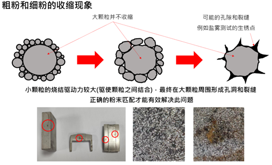 圖10.粉末顆粒過大造成產(chǎn)品的表面與內部孔隙7.對于PM/MIM/MAM工藝的綜合差異分析答:雖然在前面已經(jīng)有所描述,但仍將各項比較參數(shù)整理放置于表2所示。由于MAM是區(qū)分為兩大類別,熔融法比較偏向PM使用較大顆粒粉末,而燒結法則是使用與MIM相近的顆粒粉末,近年來MAM技術的發(fā)展到極小(可以接打印心臟血管用記憶合金支架,直徑約0.1mm中空特征,德國技術),到直接打飛機的尾翼與翅膀的大形結構(超過百公斤,大陸開發(fā)的指向性激光打印設備),都已經(jīng)超過PM/MIM的尺寸與重量限制(上下限),同時還做到模造技術無法成型的網(wǎng)格或是晶格結構(統(tǒng)稱拓樸結構),請讀者注意。表2. PM/MIM/MAM工藝的差異性